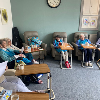 We've had the lovely Tracie from the Methodist Church visit this week ..a bit of colouring and crafting, Nightchasers Disco - Cornwall came to sing for us...and we had a lovely bit of dog therapy from our Tiny Tim this morning.